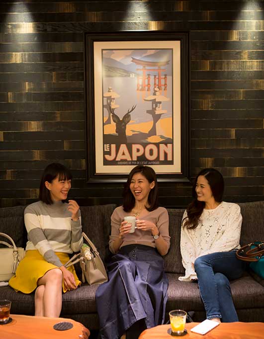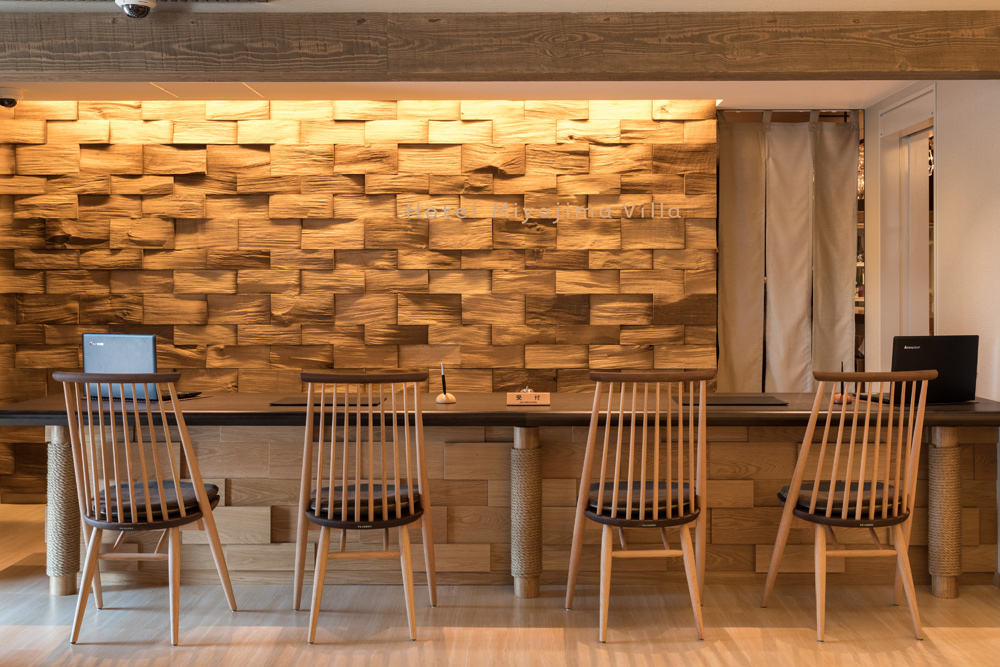 1Fフロントデスク「語LIVE」では、宮島観光や館内の過ごし方について、宮島コンシェルジュのスタッフがご案内します